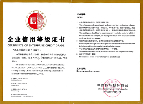 “中国招标投标协会企业信用评价AAA级信用企业”荣誉称号-中冠荣誉-中冠咨询-2024新澳门开门原料免费