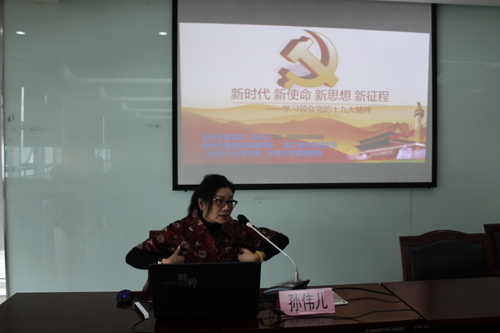 11月27日下午,中冠公司党总支组织全体党员及中层以上管理人员共计70余人,参加了"中冠公司党总支学习十九大精神"专题讲座,并邀请了鄞州区党校孙伟儿老师莅临现场授课。