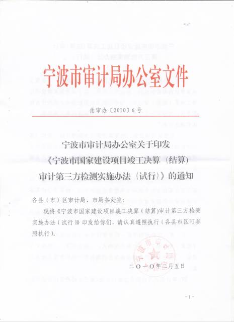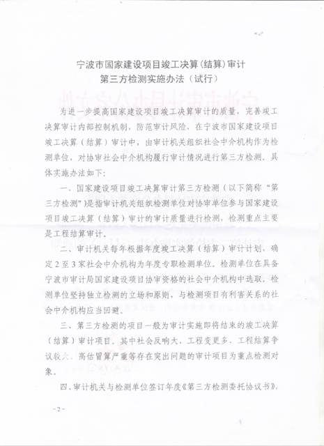 宁波市审计局办公室关于印发《宁波市国家建设项目竣工决算(结算)审计第三方检测实施办法(试行)》的通知-行业新闻-中冠咨询-2024新澳门开门原料免费