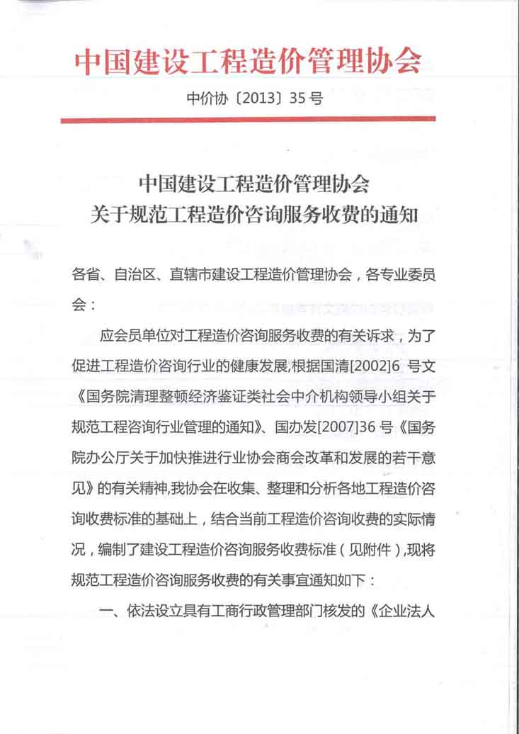 中国建设工程造价管理协会关于规范工程造价咨询服务收费的通知