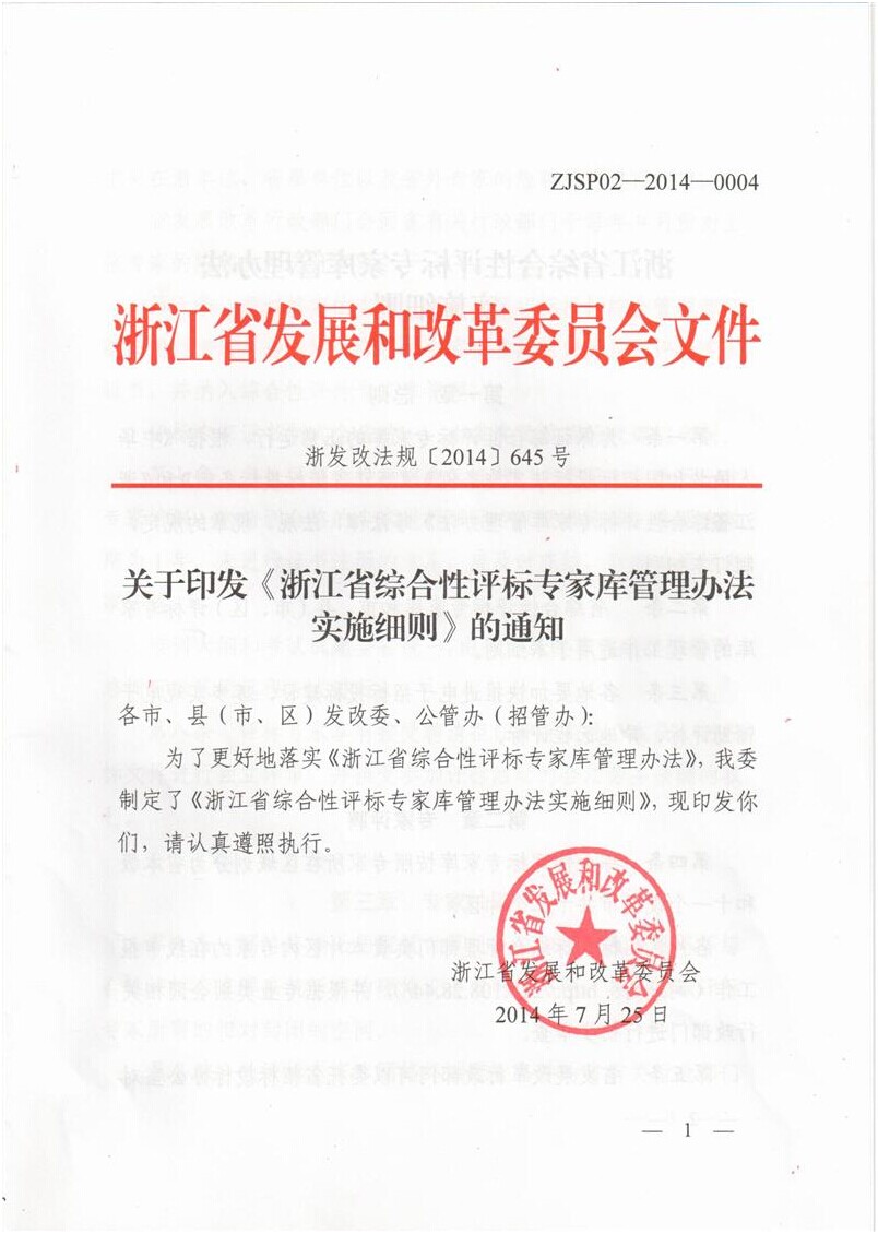 关于印发《浙江省综合性评标专家库管理办法实施细则》的通知 (浙发改法规[2014]645号)-行业新闻-中冠咨询-2024新澳门开门原料免费