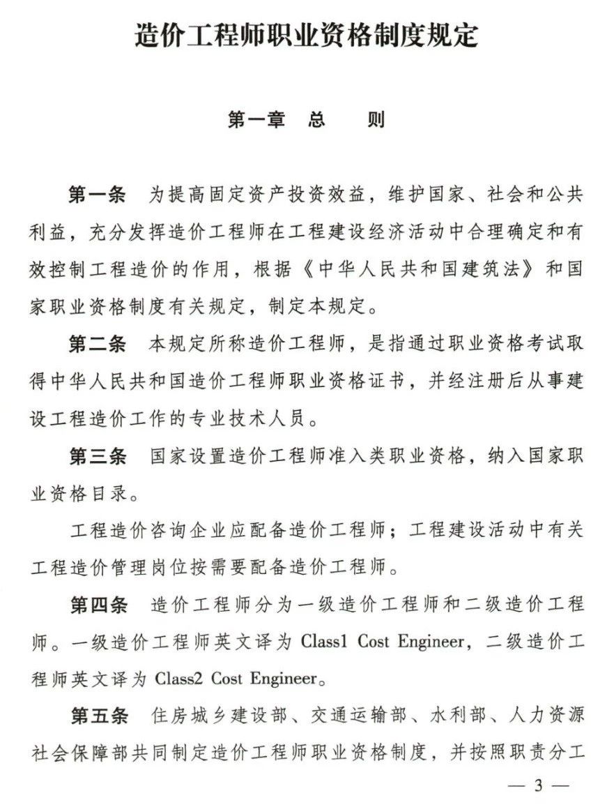 四部委正式印发《造价工程师职业资格制度规定》《考试实施办法》-行业新闻-中冠咨询-2024新澳门开门原料免费