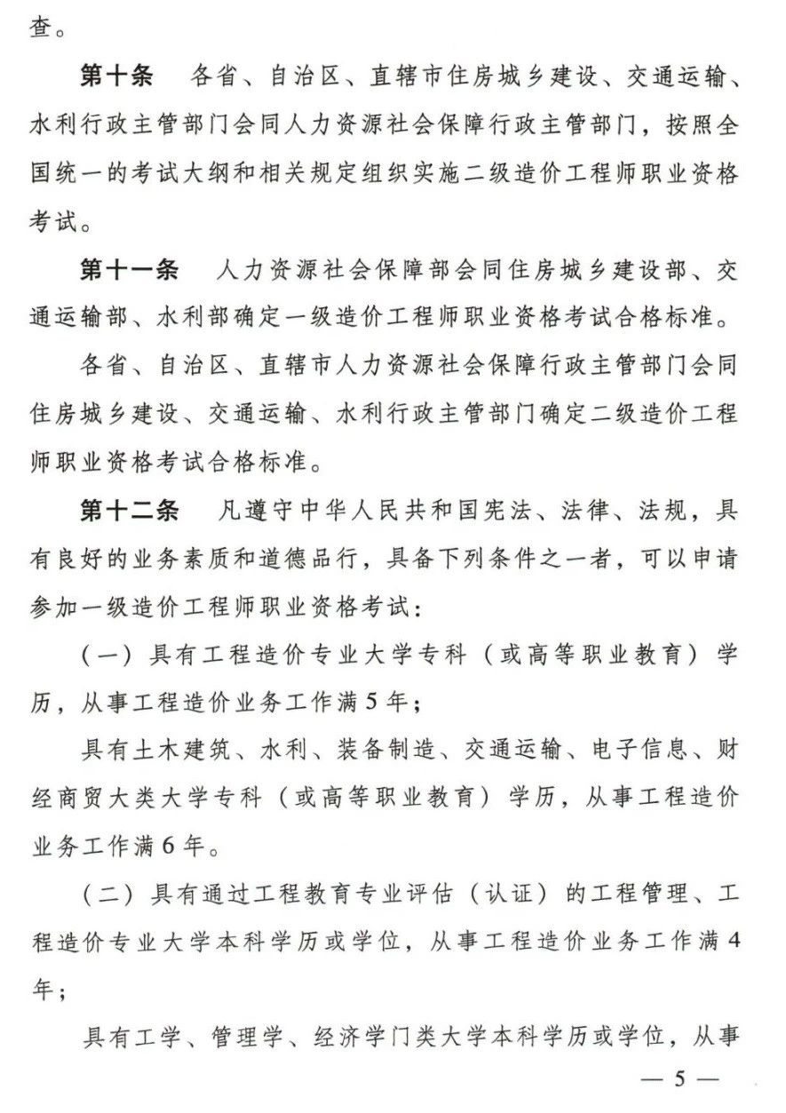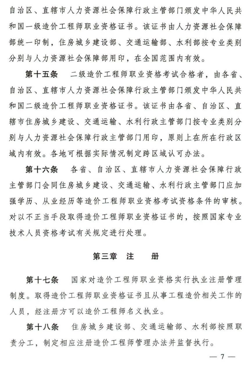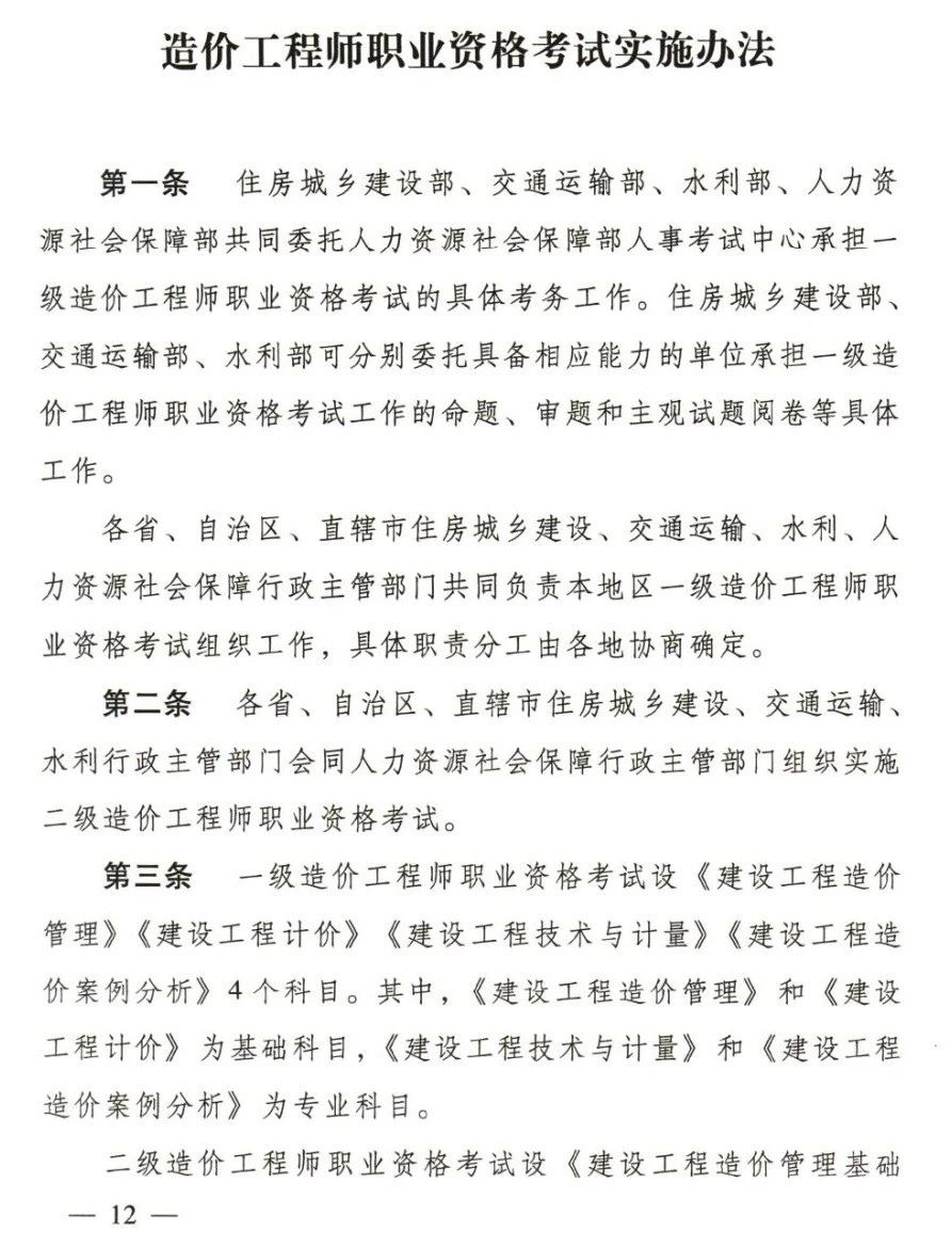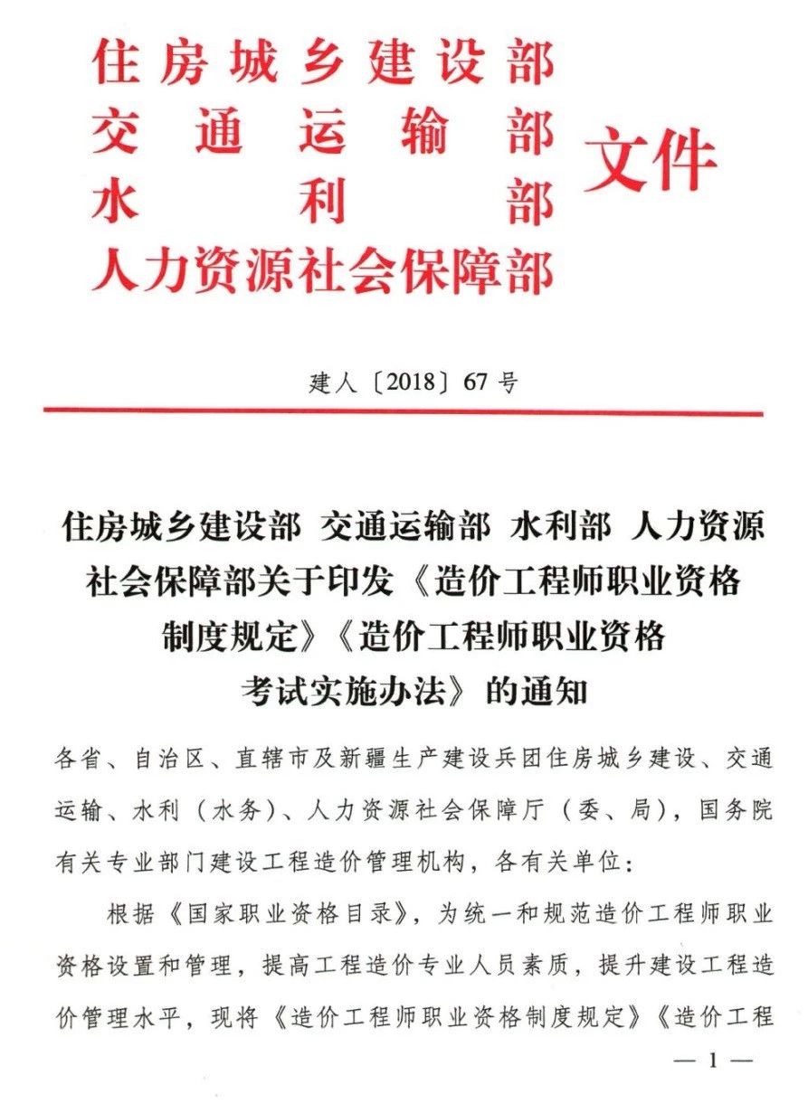 四部委正式印发《造价工程师职业资格制度规定》《考试实施办法》
