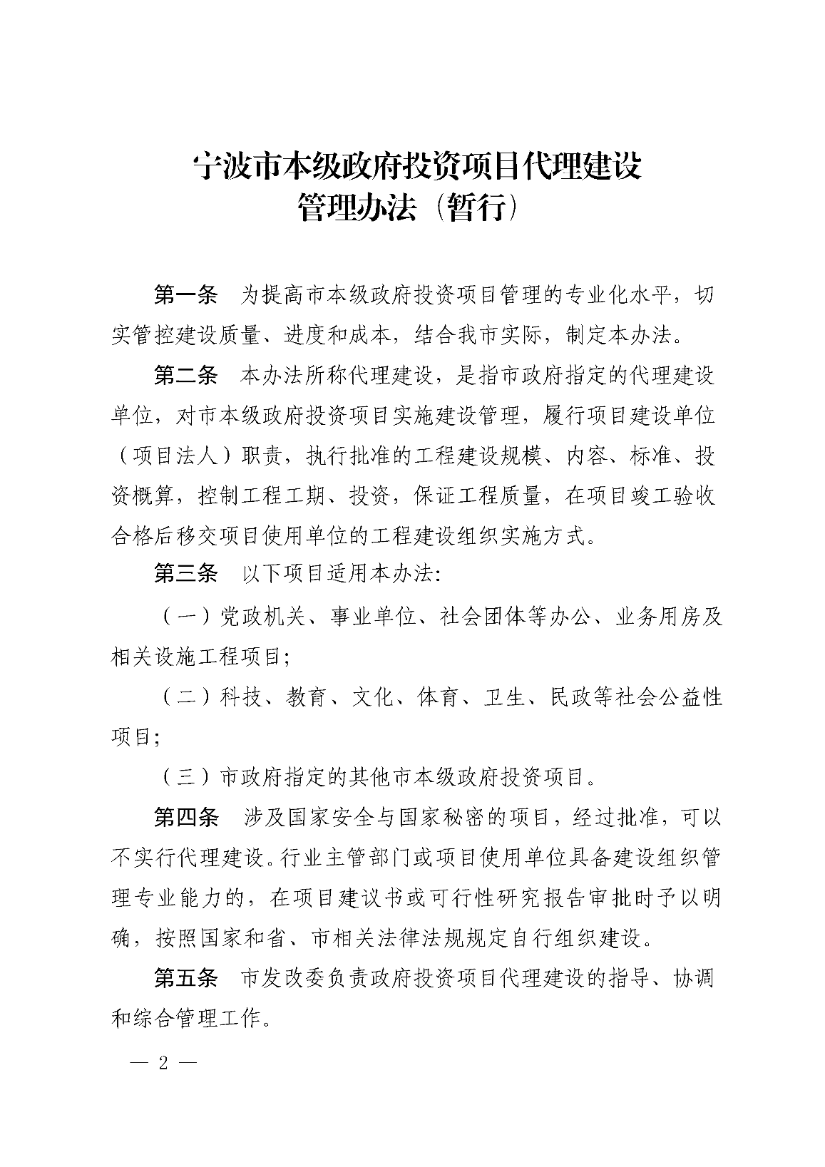 宁波市人民政府办公厅关于印发宁波市本级政府投资项目代理建设管理办法(暂行)的通知